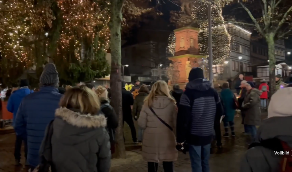 In Bensheim, jeden Montag – um 17:30 Uhr zum Singen mit Gitarre und um 18 Uhr zum Spazieren – sind es am 15.11.21 40 Teilnehmer, am 22.11. 80. Am 29.11. erhielten wir einen Anruf vom Ordnungamt – sie bekamen von uns die Aussage, dass wir nur für den Frieden spazieren gehen.